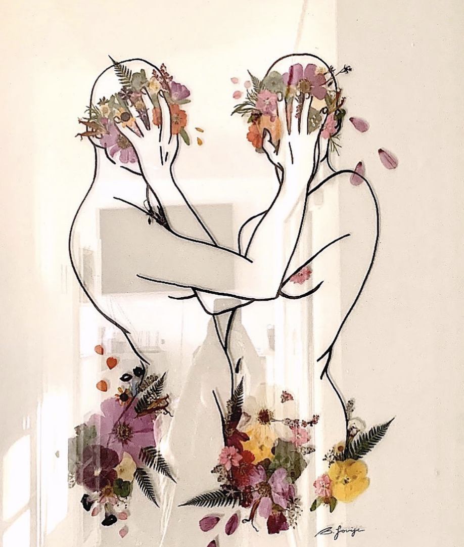 After spending years exploring every medium under the sun, I finally found my groove working with secondhand frames, pressed flora and fauna, and minimalist line work. I wanted to align my art with my values, and both sustainability and earth-consciousness are deeply important to me. So when I found I was able to advocate for something I‘m passionate about, using art as the vessel, I felt like I struck gold.